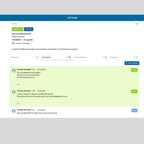Your ultimate solution for seamless media management and engagement in public safety and government. TrustedUpdate empowers you to handle live incident updates, misinformation control, and stakeholder communications all from one powerful platform.