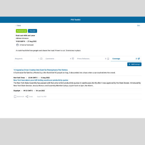 Quickly add media coverage to your incidents