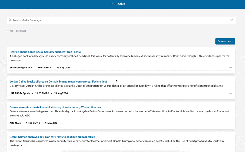 Search for media coverage and bookmark it to your incidents and events.